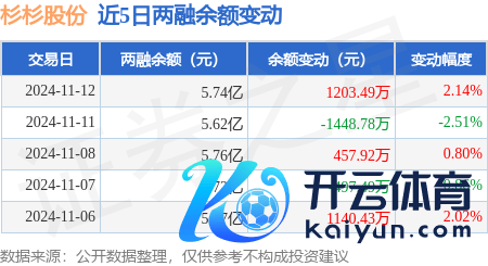 本站音问,11月12日,杉杉股份(600884)融资买入3907.15万元,融资偿还2687.72万元,融资净买入1219.43万元,融资余额5.71亿元,近20个交往时中有12个交往时出现融资净买入。