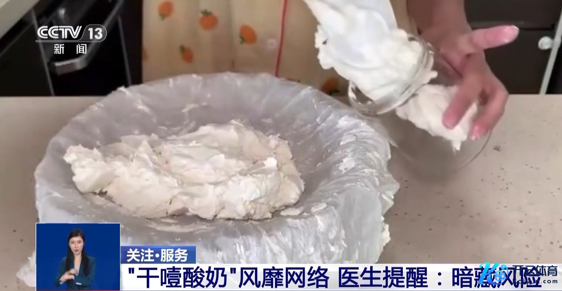 近期,一种不错嚼着吃的“干噎酸奶”引起世界矜恤。不少网友发布品味视频,展示其干噎进度,并嘲谑“咽的技艺脖子要伸得很长”“吃完这款酸奶脖子能长出八块腹肌”。跟着这款酸奶的火爆,有东谈主开动尝试我方制作,可是制作经过装潢着潜在的食物安全风险。近日,一女子在家好处“干噎酸奶”,恶果吃完后吐逆不啻,最终被会诊为细菌超标。“干噎酸奶”究竟是什么?好处和食用时又需驻防什么?来听听医师的提出。