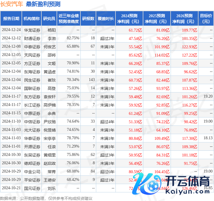 最新盈利预测明细如下: